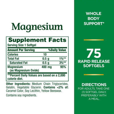 Nature'S Bounty Magnesium Rapid Release Softgels, 400 Mg, 75 Ct