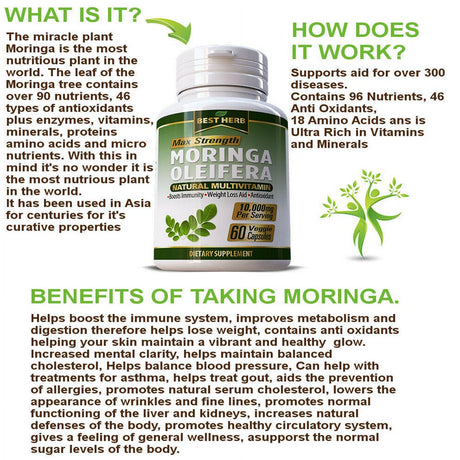 Moringa Oleifera Natural Multi-Vitamin 10:1 Leaf Extract Boosts Immune System Capsules