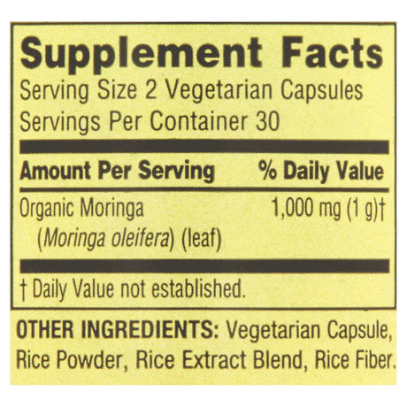 Spring Valley Moringa Oleifera, Dietary Supplement, Capsule, 1,000 Mg, 60 Count