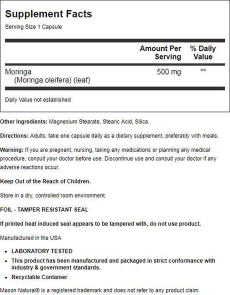 PURE ORGANIC MORINGA OLEIFERA VEGETABLE CAPSULES (500Mg)