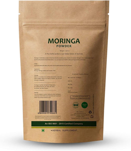 Raw Organic Moringa Powder - 226 Grams (8 Oz)