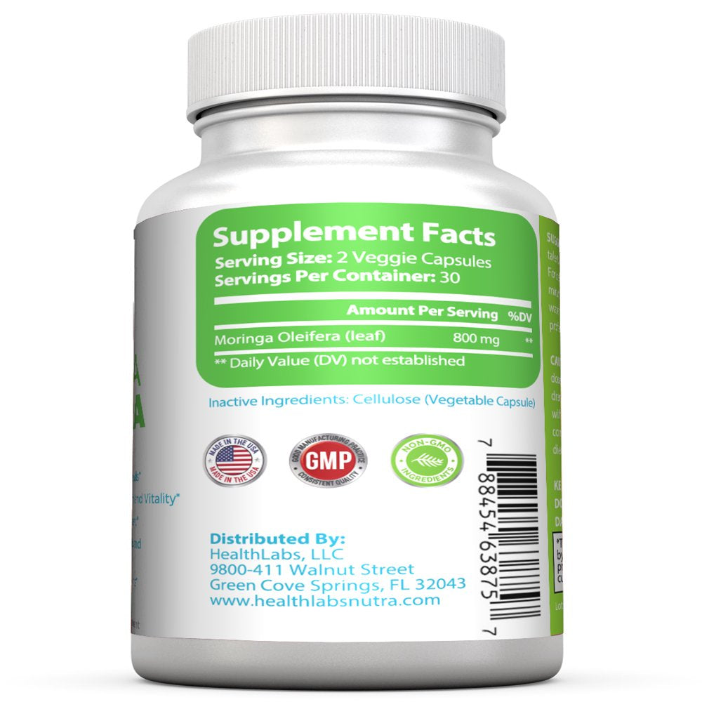 • Health Labs Nutra Moringa Capsules are Vegan, Vegetarian, Gluten Free and Non-GMO.