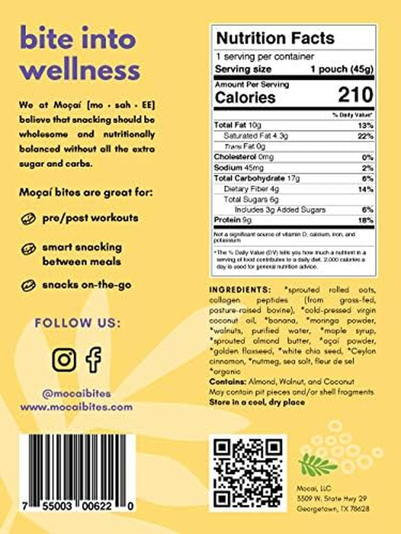 - ON-THE-GO SNACK! Our resealable pouches are ideal for taking snacks on-the-go. The Moçaí bites' convenient packaging allows you to take a nutritious treat wherever you go. It fits perfectly in your purse, gym bag, or diaper bag. Having some easy, healthy snacks available can be a game-changer for your busy days.