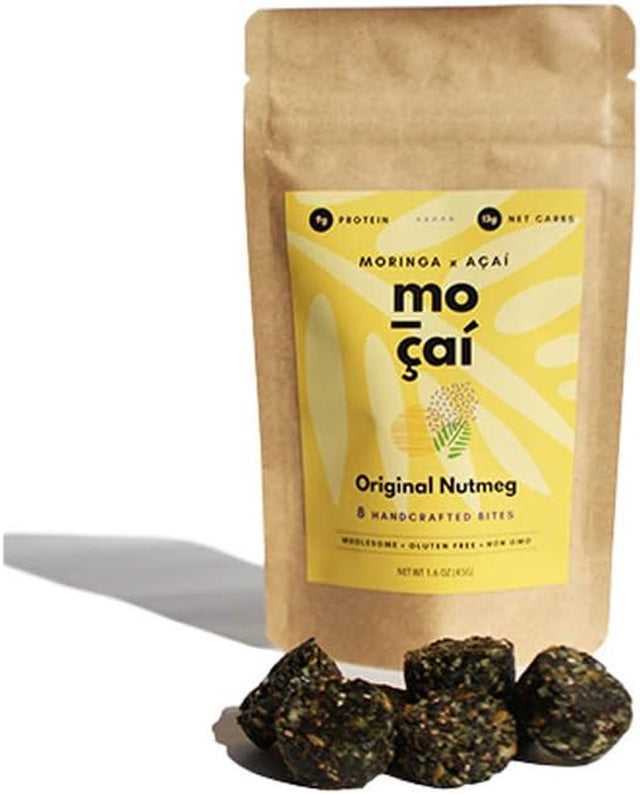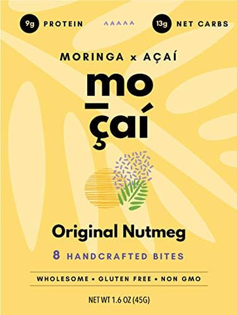 Healthy Snack Pack | Moringa & Açaí | Set of 6 | Organic Ingredients | High Protein | Low Sugar | Low Carbs | Gluten Free | Energy Bites - Original Nutmeg / 6-Pack is backordered and will ship as soon as it is back in stock.
