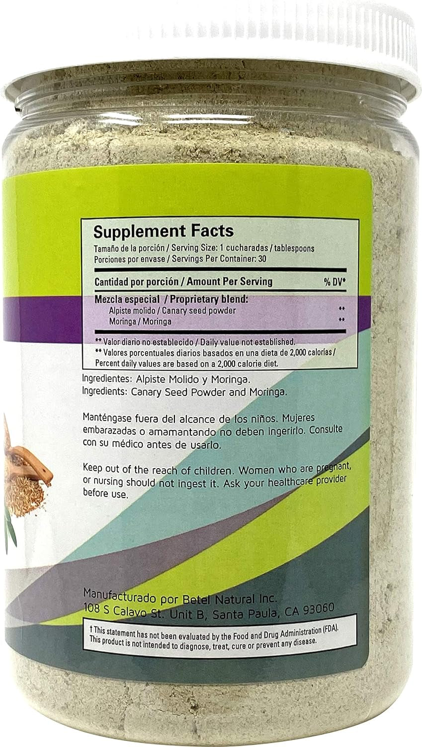 Leche De Alpiste with Moringa No Silica- Great Source of Fiber - 16 Oz