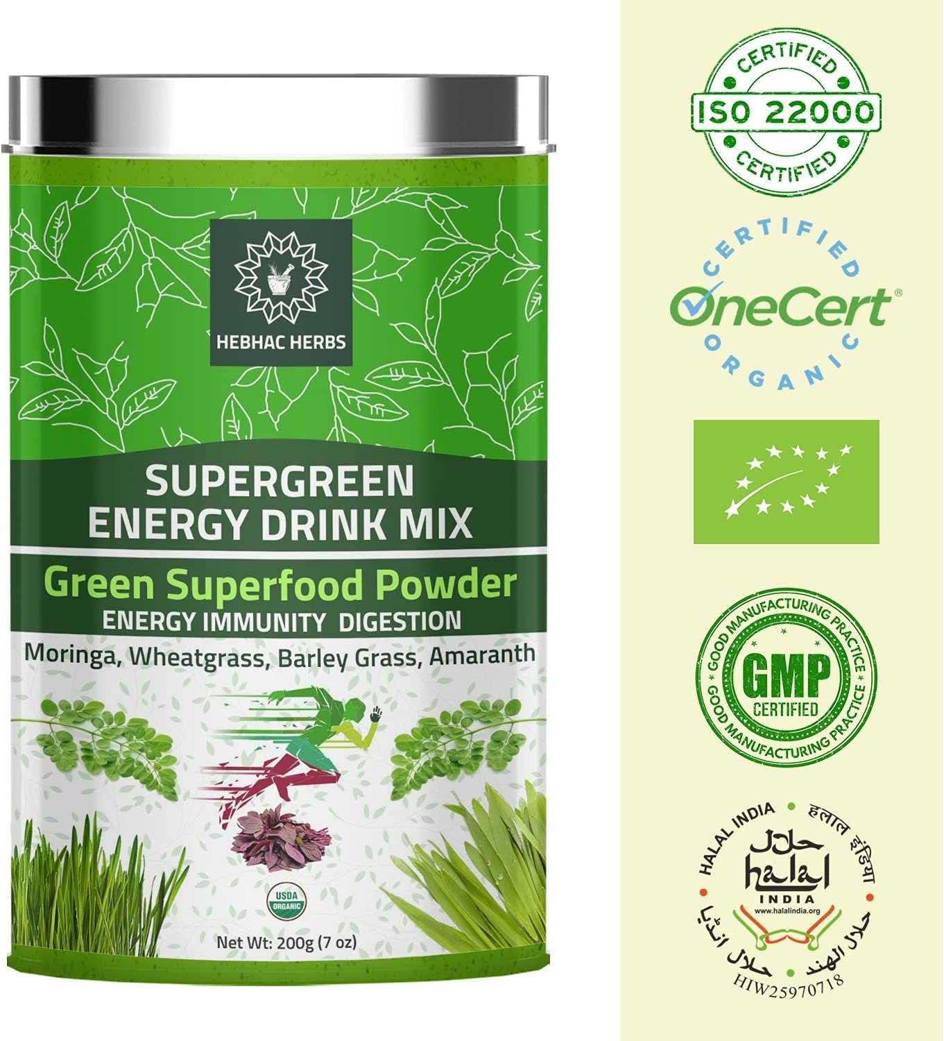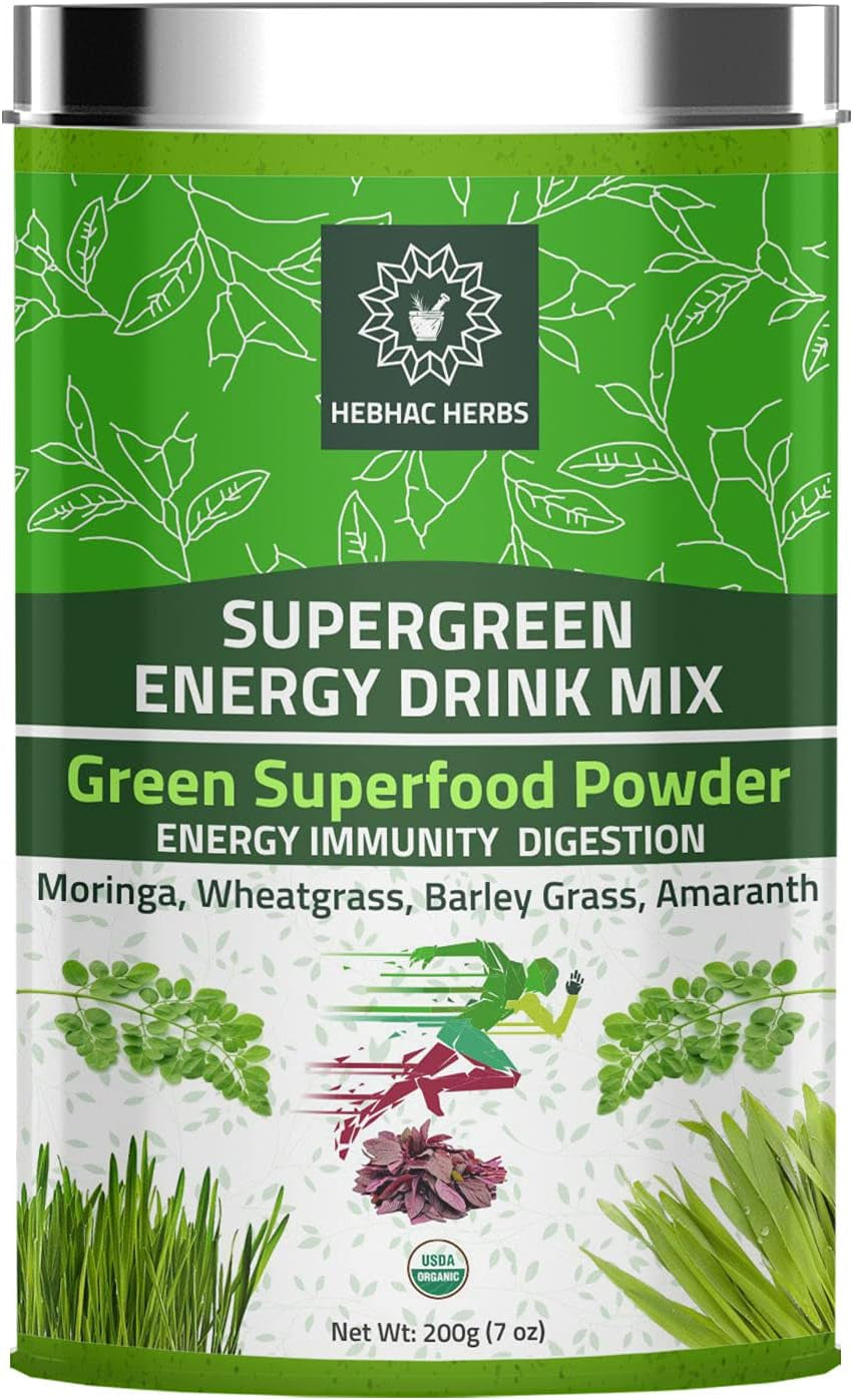 Organic Super Green Energy Drink Mix Moringa Powder, Wheat Grass Powder, Barley Grass Powder, Amaranth Powder, Greens Superfood Detox Powder.