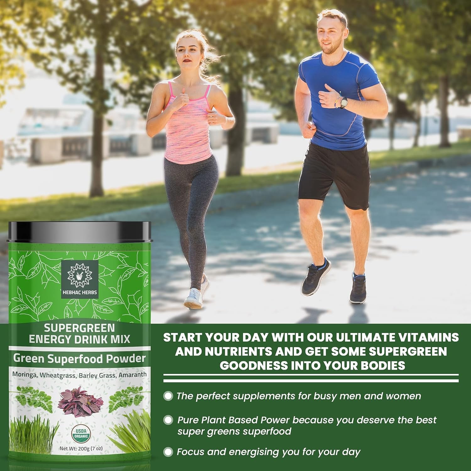- VEGAN SUPERFOOD BLEND SUPPLEMENT: Organic Super Green Energy Drink Mix Powder is 100% vegan and contains Moringa, Barleygrass, Wheatgrass, Amaranth Powder. The perfect supplements for busy men and women.