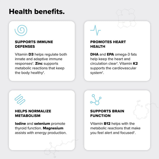 Vitamin B12, DHA & EPA Omega-3s, Vitamin D3, Zinc, Iodine, Vitamin K2, Selenium, Magnesium/div>