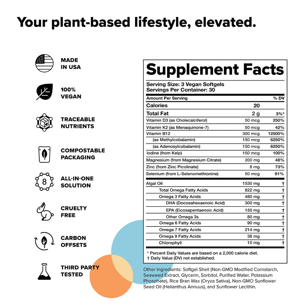 • OPTIMIZE YOUR FOUNDATIONAL HEALTH: 8 critical vitamins, minerals, and sustainably-sourced omega-3s proven hard-to-get through a plant-based diet alone — all in one easy-to-take capsule.