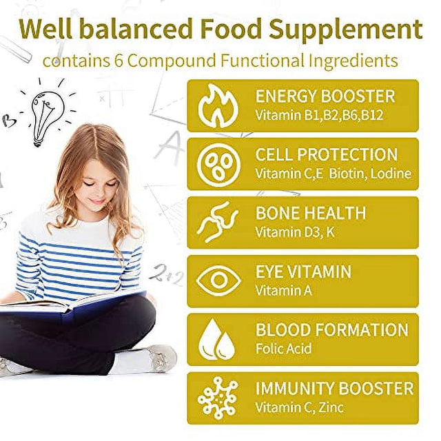 • MULTIVITAMIN&MINERALS FORMULA: Dr. Brain kids multivitamins has 9 types of vitamins and 2 minerals and other nutrients, Vitamin C,D3,A,K,Vitamin B Complex B1,B2,B6,B12,Zinc,Folic Acid,Biotin and Lodine.