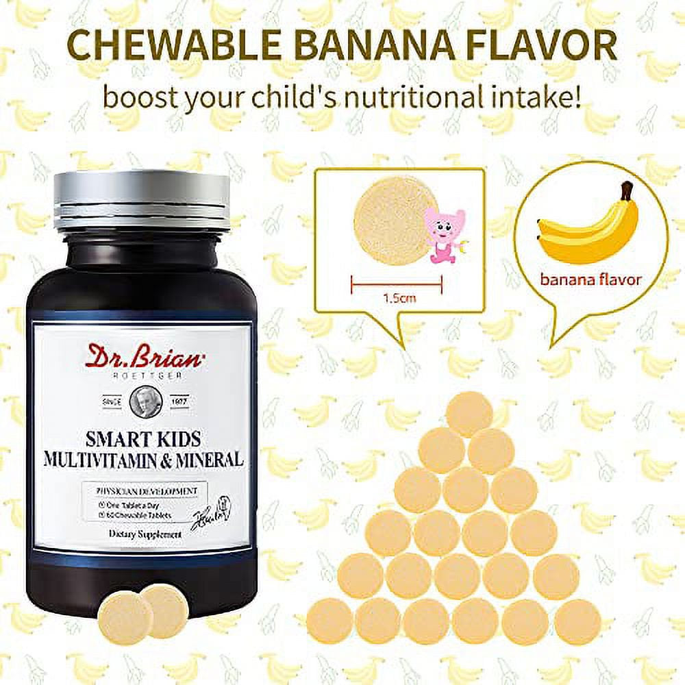 • CHEWABLE AND BANANA FLAVOR: Dr.Brian multivitamins for kids children are chewable vitamin tablet with banana flavor,easy and convenient to intake, meets kids and children's desire.