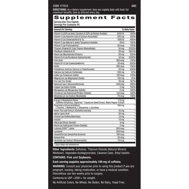 Description Taking a daily multivitamin keeps you on the right track for filling your nutritional gaps. Mega Men® Energy & Metabolism is an enhanced multivitamin that provides the same clinically studied base as our Mega Men® formula with ingredients that help boost your energy! Advanced Nutritional Support Includes 1,600 IU of vitamin D-3. Emerging research suggests that adequate daily vitamin D intake may play a role in supporting colon and immune health.* Supplies B-vitamins that are essential for energy production and metabolism.* Calorie Burning Support Features an energy and metabolism blend that helps boost energy and metabolism and supports calorie burning.* The components in this blend also help support mental focus.* Antioxidant Protection Contains a premium blend of antioxidants including selenium, vitamin C and vitamin E to aid in supporting the body's immunity.* Combines lutein and zeaxanthin, to support eye health, with lycopene, an antioxidant from tomatoes to support cardiovascular health.* Timed-release caplets provide a gradual release of vital nutrients. *These statements have not been evaluated by the Food and Drug Administration. This product is not intended to diagnose, treat, cure, or prevent any disease. Specifications Clinically studied multivitamin With 1,600 IU of Vitamin D-3 for colon health and immune support* Boosts energy and metabolism* Supports mental focus* Calorie burning support