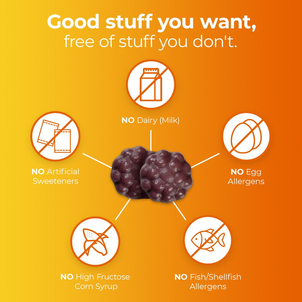 - Formulated to support bone health, immune health, and skin health in a convenient gummy form