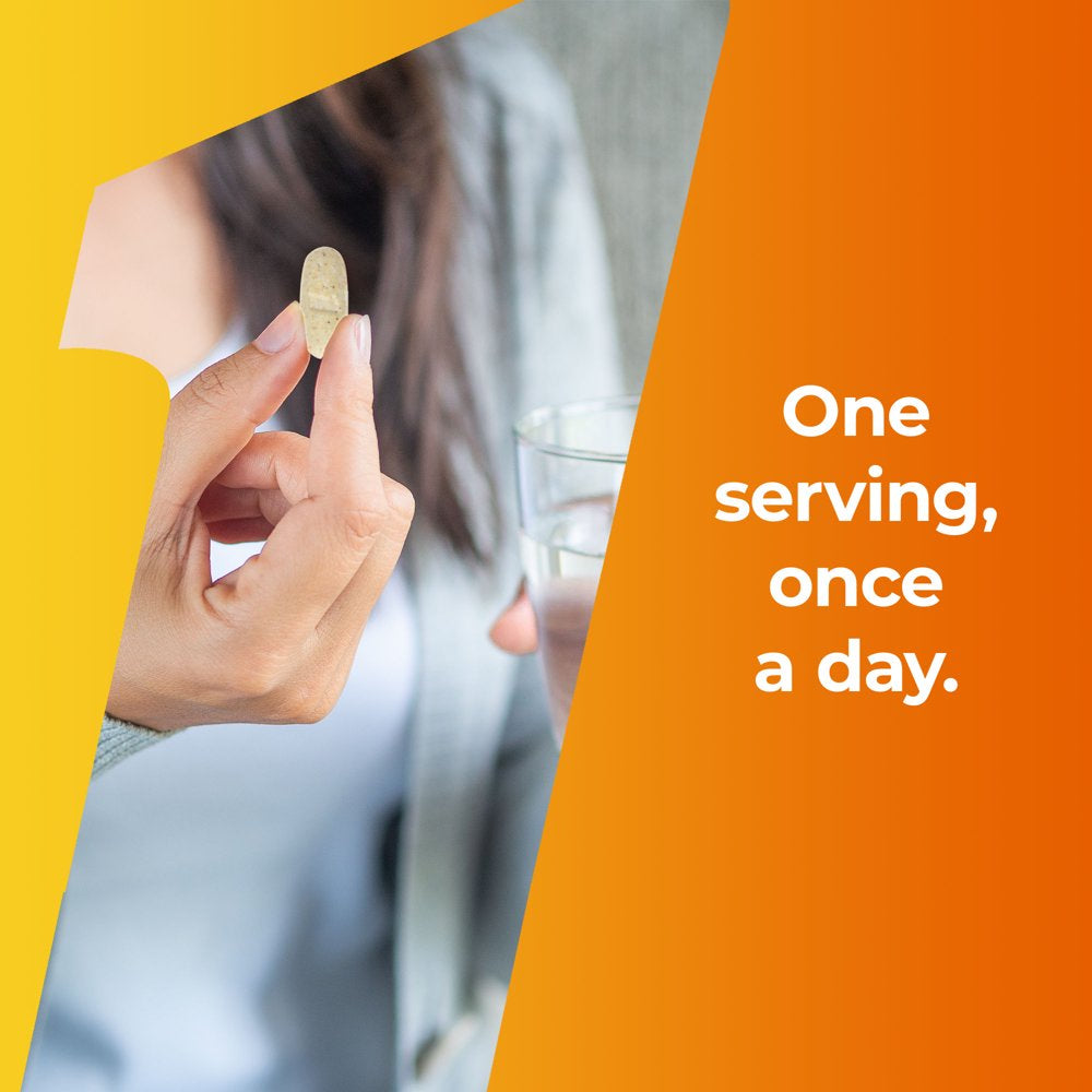 - One A Day multivitamin formulated to support bone health, immune health, skin health, heart health, and physical energy by helping convert food to fuel