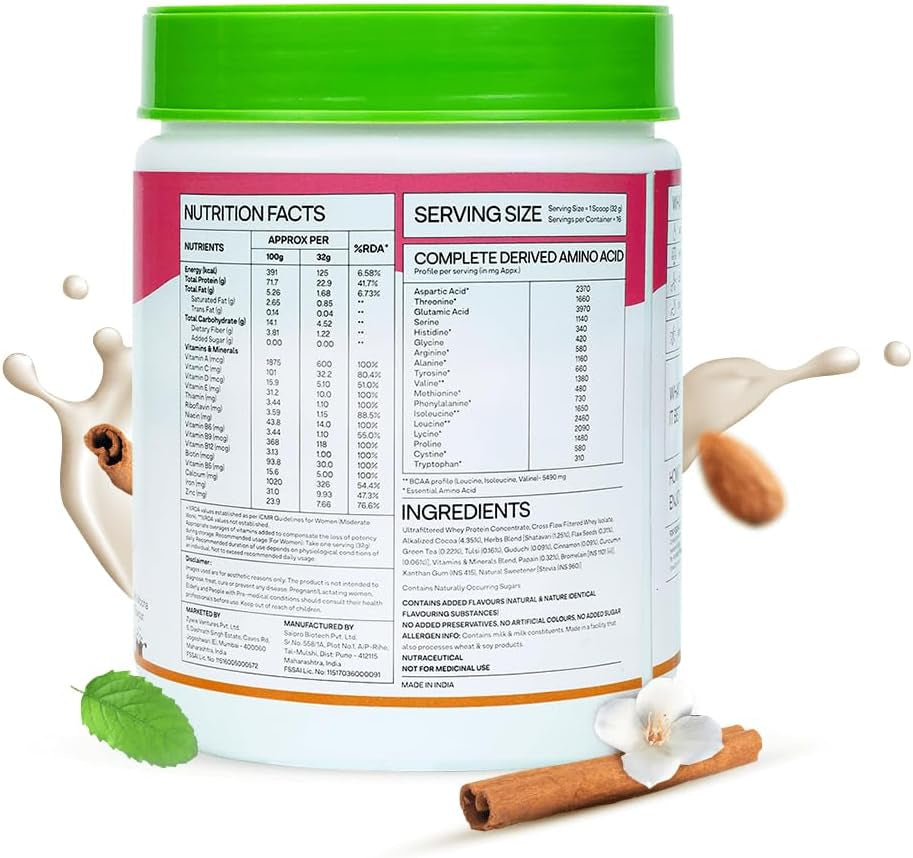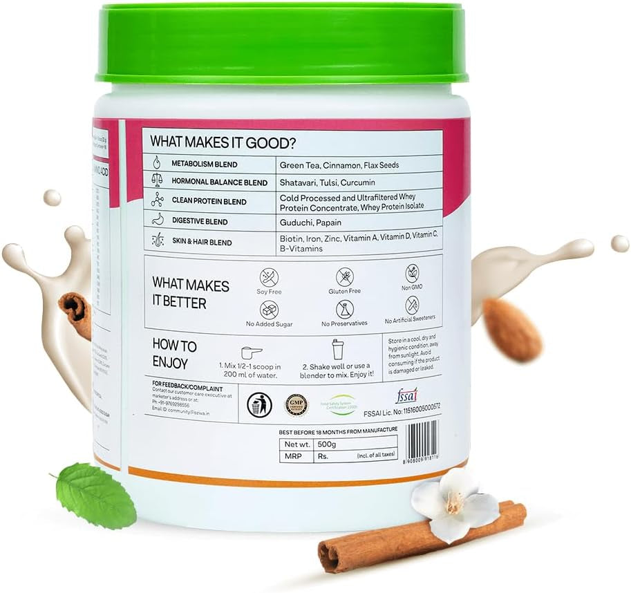 Protein & Herbs for Women | 1.1 Lbs (500 Gm) with Multivitamins, Curcumin, Shatavari, Tulsi for Improved Metabolism, Hormonal Balance & Skin, Hair Health, Vanilla Almond (1.1 Lb)