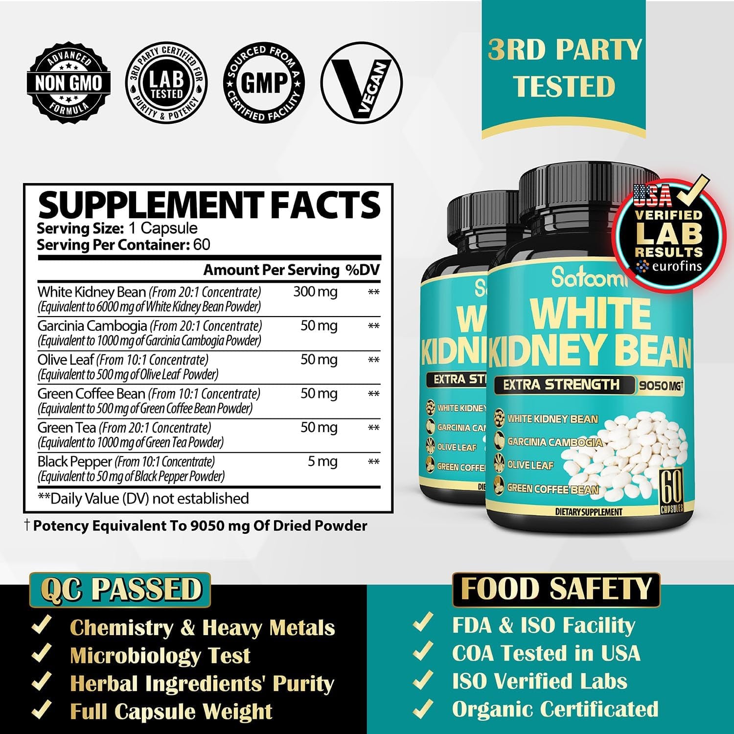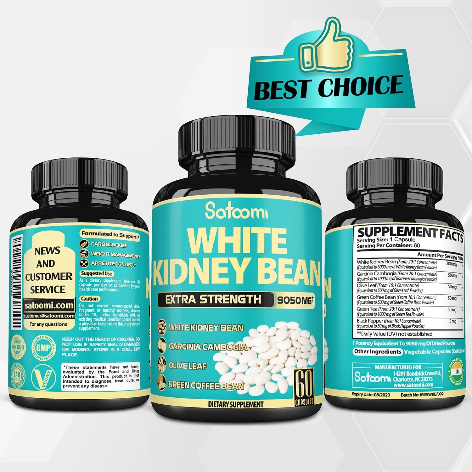 • βœ… Great Body Management - Each veggie capsule provides an equivalent of 9050mg daily of dried herbs. Satoomi White Kidney Bean Extract powder 20:1 Supplements support intercepting absorption of Carb, Starch, and Foods in a healthy way.*