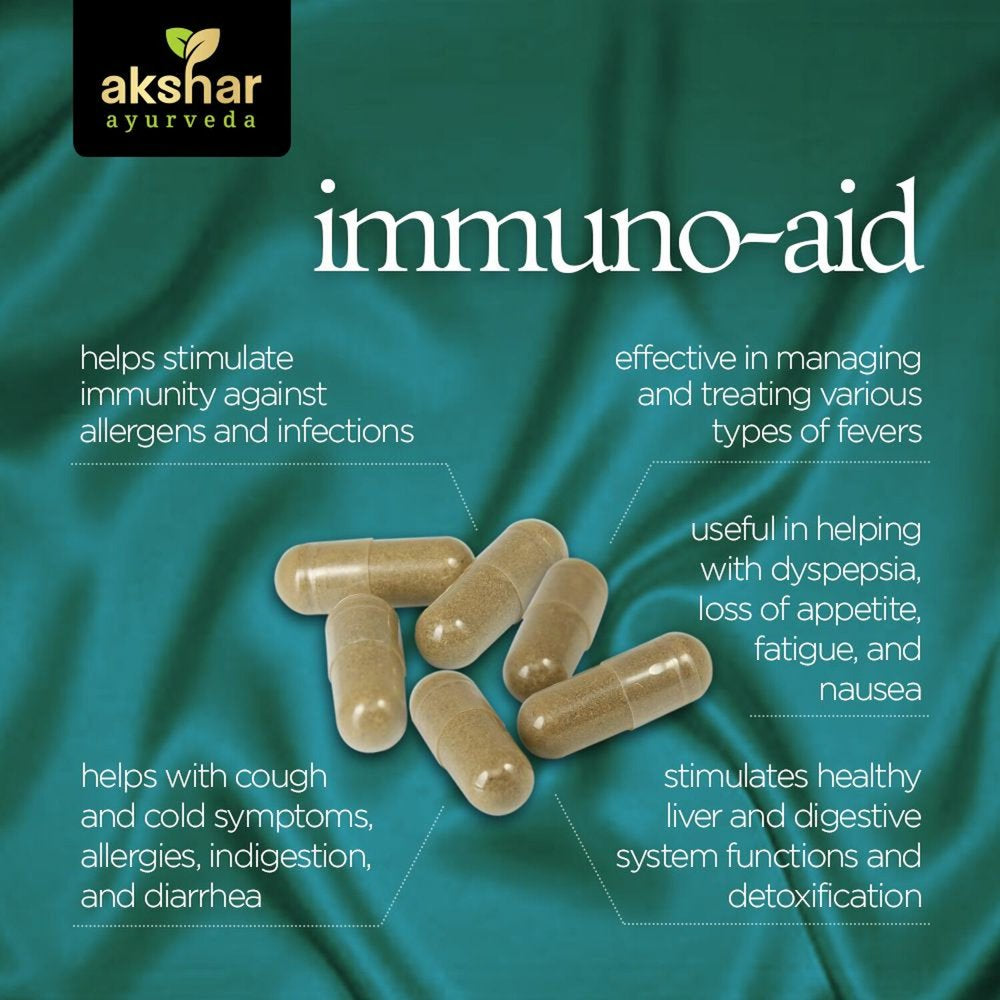 AKSHAR AYURVEDA Immune Support Supplement Immuno Aid Capsules W/ 54 Essential Herbs, 60 Capsules