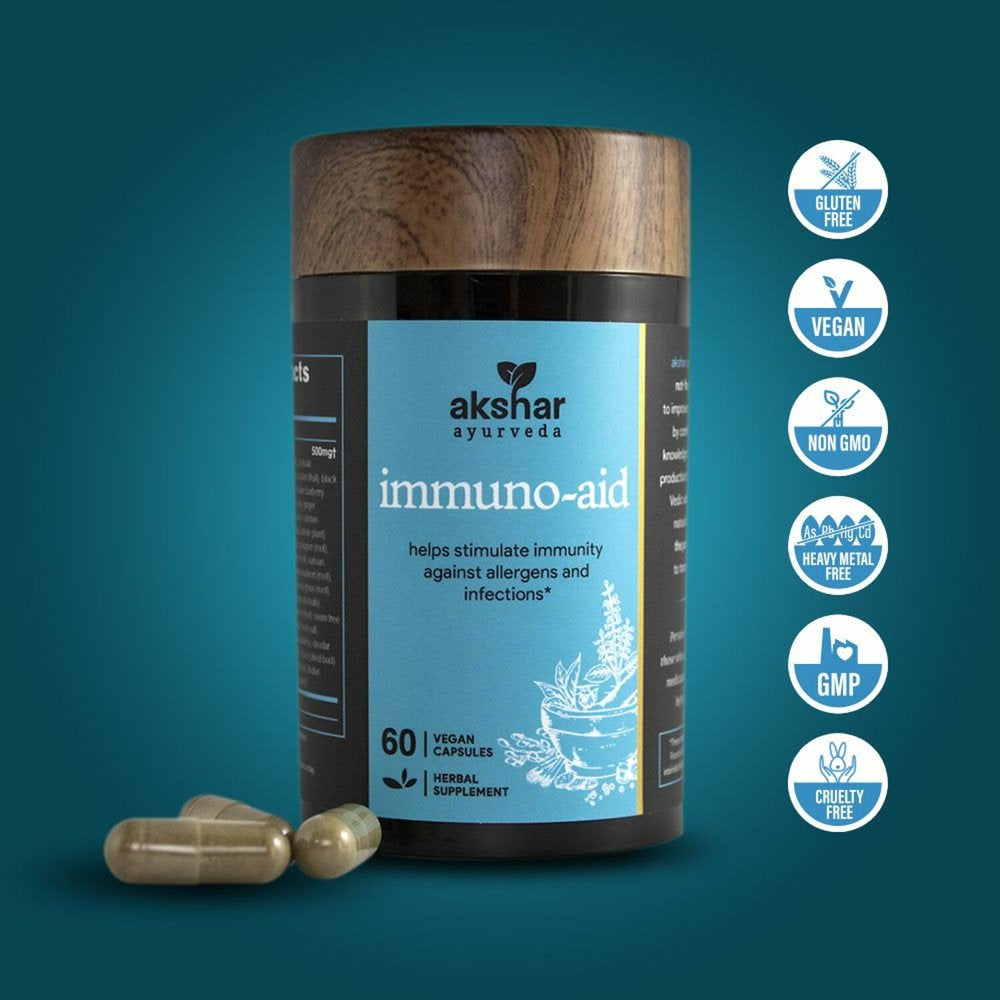AKSHAR AYURVEDA Immune Support Supplement Immuno Aid Capsules W/ 54 Essential Herbs, 60 Capsules is backordered and will ship as soon as it is back in stock.