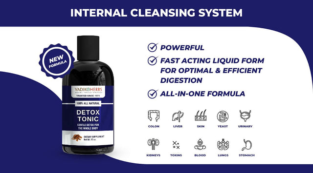 Detox Tonic-Cleanse Detox Drink, Ultimate Body Detox for Men and Women 10 Oz. , Liver Cleanse, Extra Strength Detoxification by Vadik Herbs | Fast Acting Liquid Form