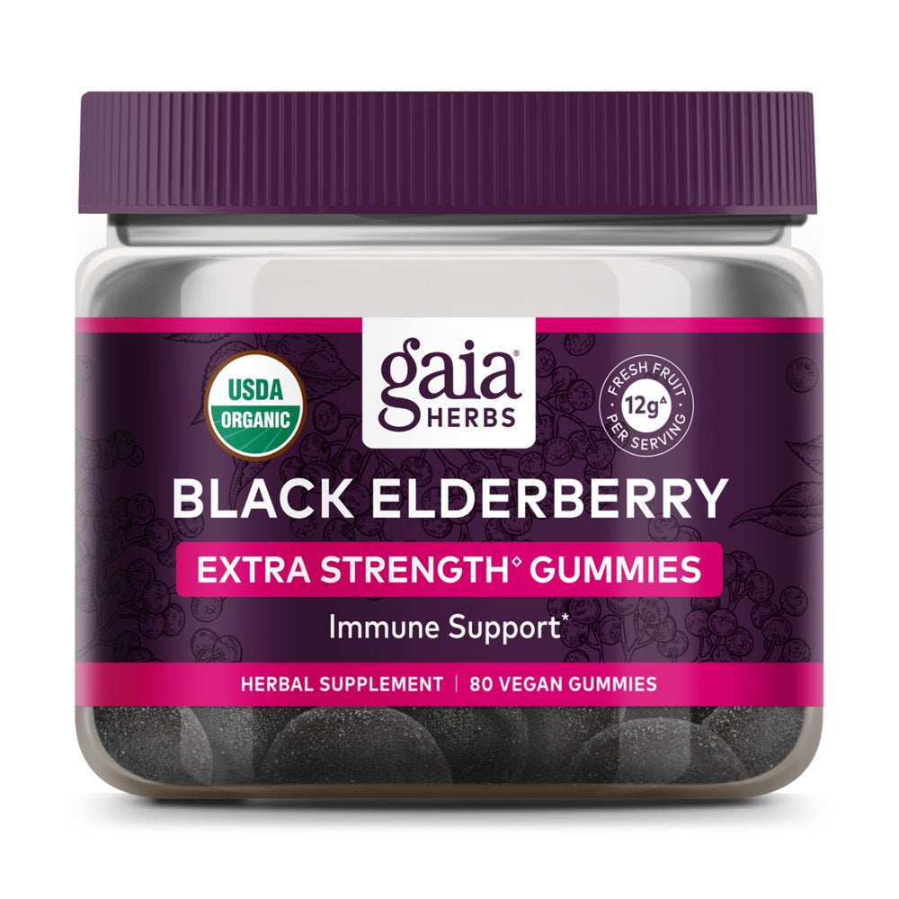 - Gaia Herbs Black Elderberry Extra Strength Gummies, Delicious Immune Support Supplement, Made with Certified Organic Black Elderberries for Immune System Support, 40 Gummies (Up to 20-Day Supply)