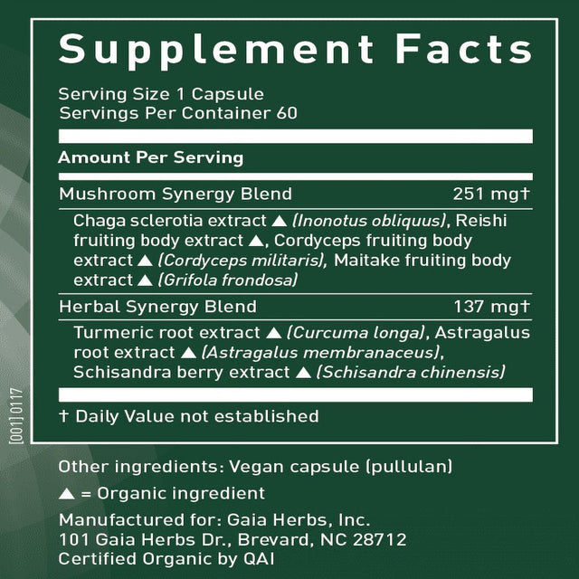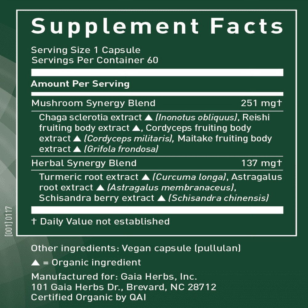 - Gaia Herbs Everyday Immune Mushrooms & Herbs, Immune Support Supplement to Help Aid Overall Wellness*, with Turmeric, Astragalus, Cordyceps, and Chaga Mushrooms, 60 Vegan Capsules (30-Day Supply)