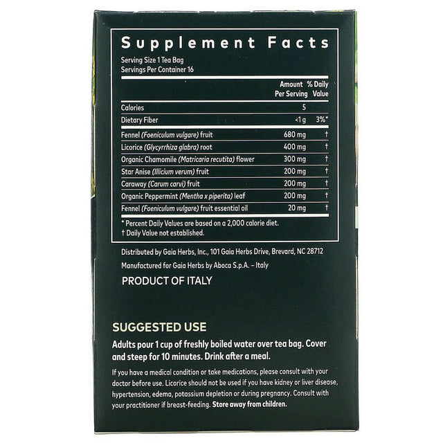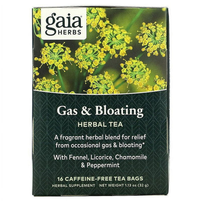 Gaia Herbs, Gas & Bloating, Herbal Tea, Caffeine-Free, 16 Tea Bags, 1.13 Oz Pack of 3