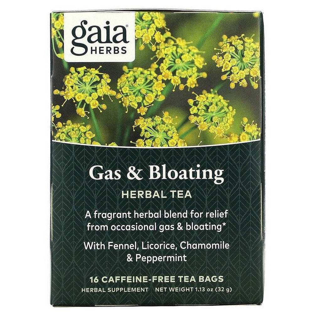 Gaia Herbs, Gas & Bloating, Herbal Tea, Caffeine-Free, 16 Tea Bags, 1.13 Oz Pack of 4