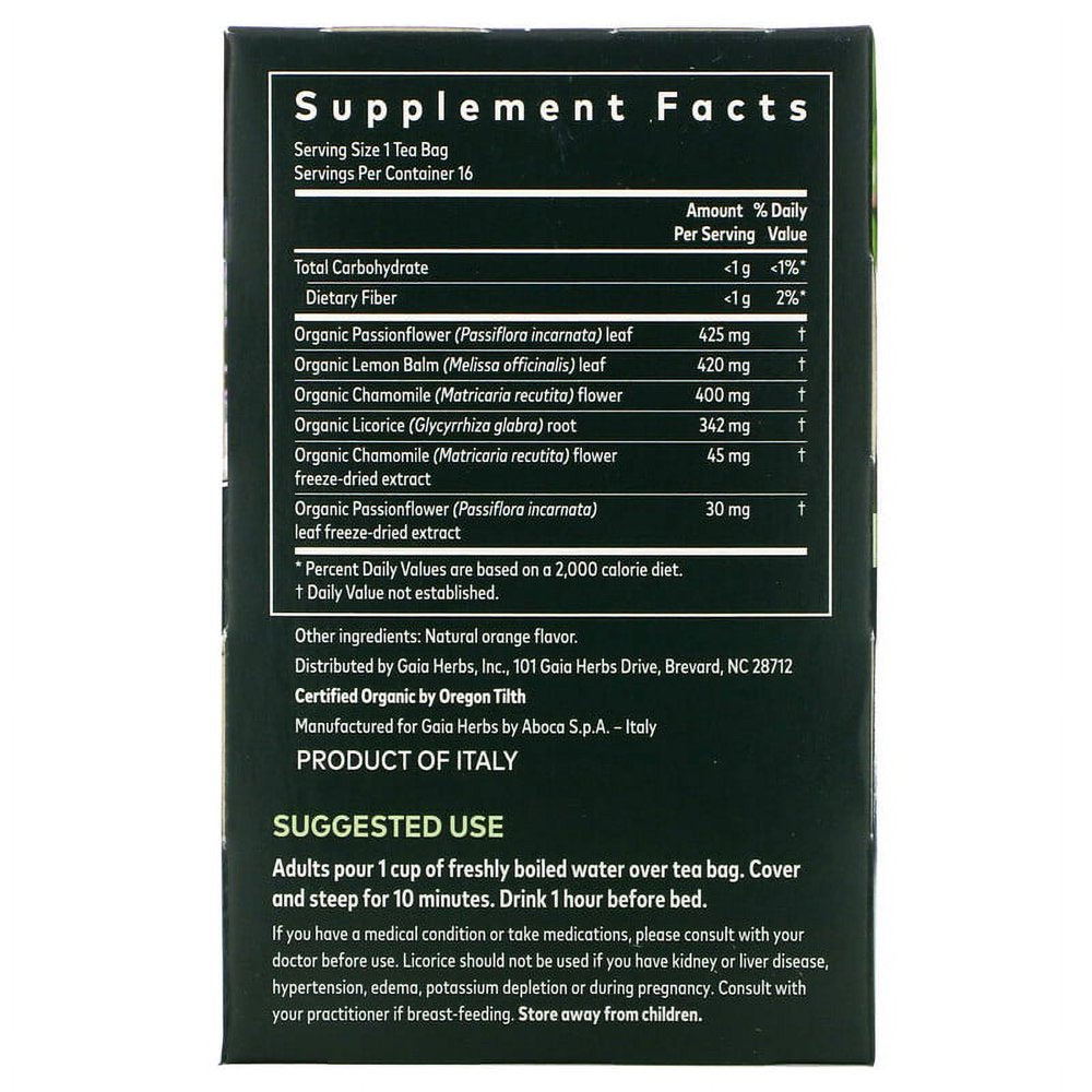 - Gaia Herbs Sleep & Relax Herbal Tea, Sleep and Calm Support Tea, with Passionflower, Chamomile, Lemon Balm, and Licorice Root, 16 Caffeine-Free Herbal Tea Bags