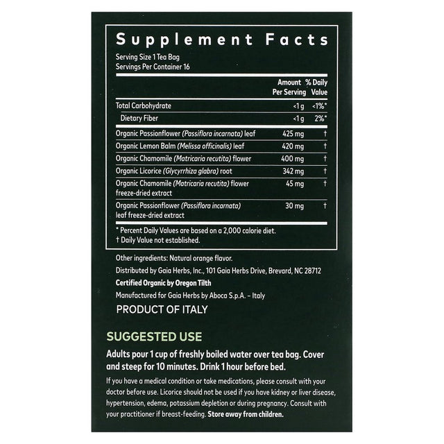 Gaia Herbs, Herbal Tea, Sleep Relax, Caffeine-Free, 16 Tea Bags, 0.96 Oz (27.2 G)