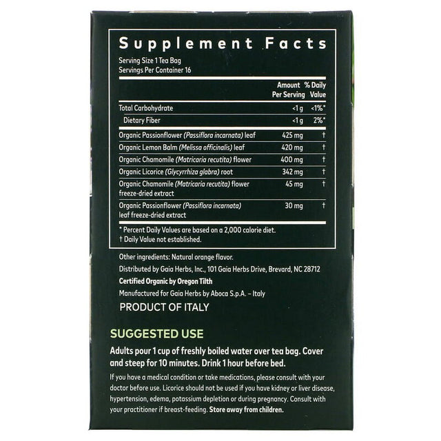 | Product Name | Gaia Herbs, Herbal Tea, Sleep & Relax, Caffeine-Free, 16 Tea Bags, 0.96 oz Pack of 4 |