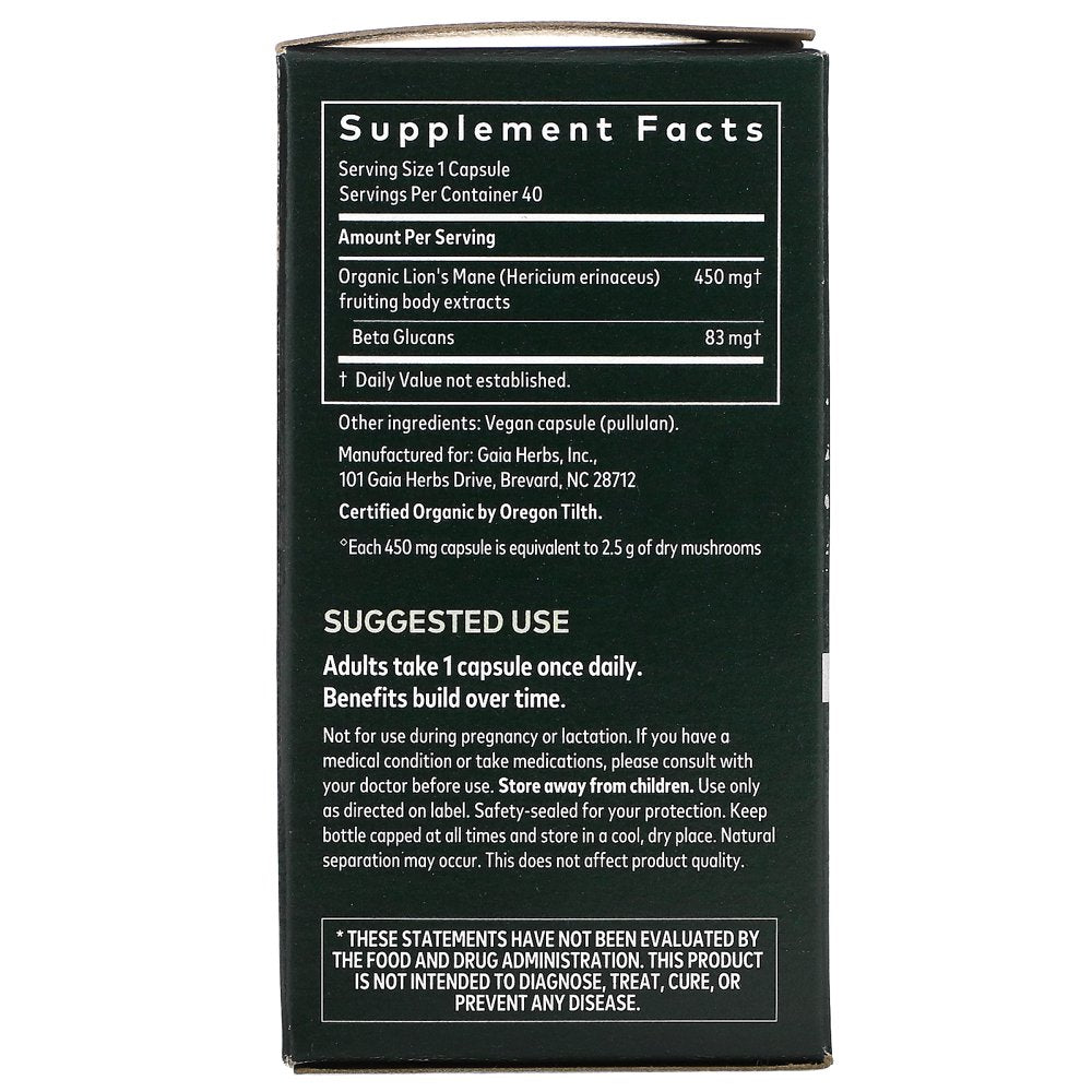 | Product Name | Gaia Herbs, Lion's Mane Mushroom, 40 Vegan Capsules |
