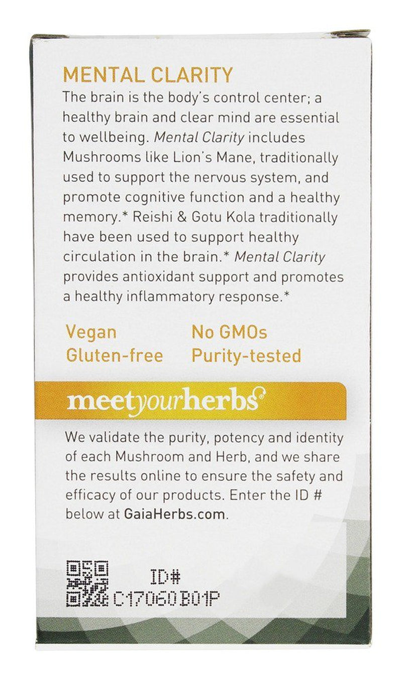 Gaia Herbs Mental Clarity Mushrooms & Herbs brain and cognitive support helps promote cognitive function and healthy memory. This brain support supplement is perfect for those moments when you may feel overtaxed and want to stay clear and alert*. This vegan herbal supplement promotes a clear and focused mind to help support your overall mental clarity.