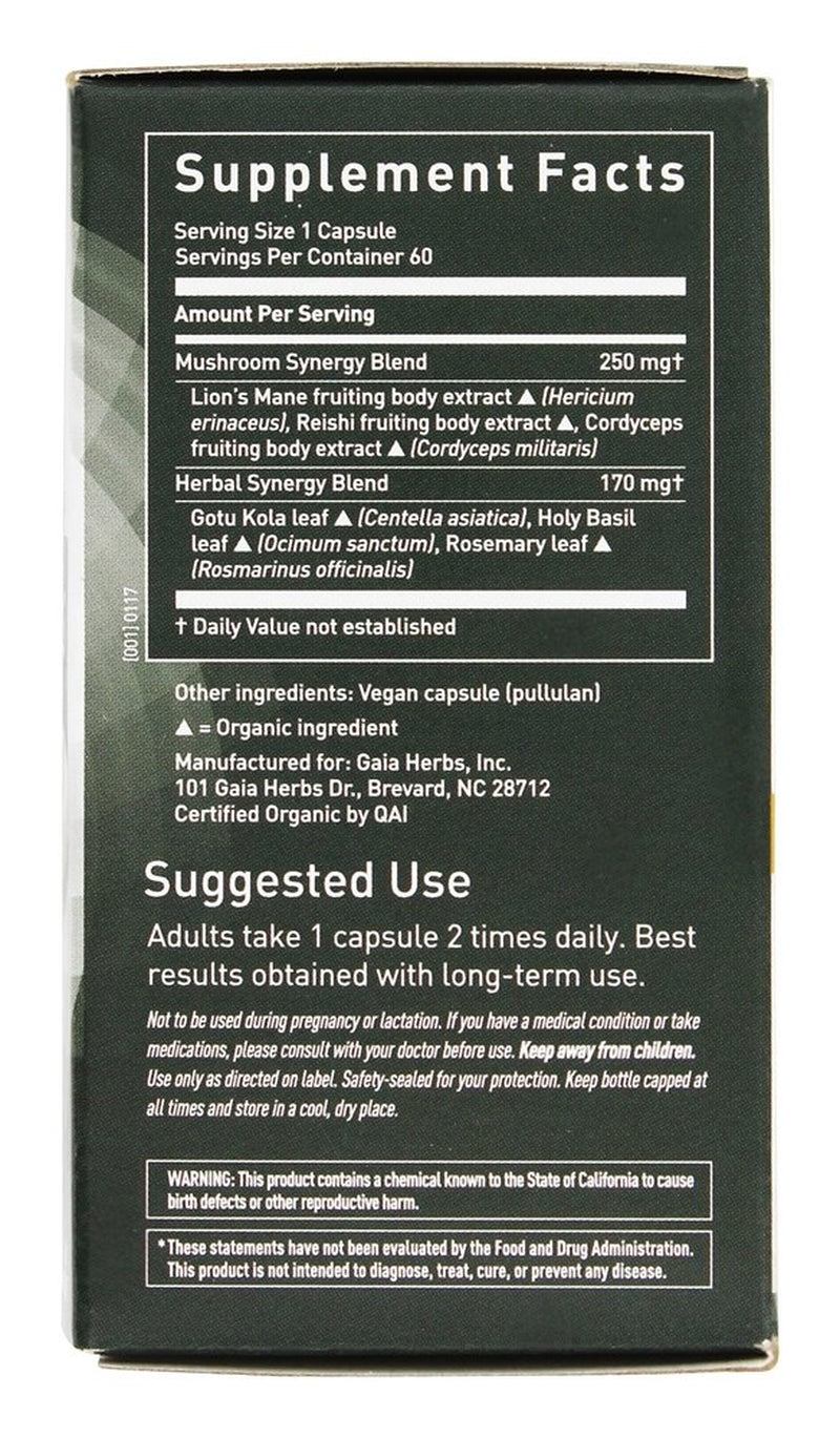 - Gaia Herbs Mental Clarity Mushrooms & Herbs, Memory and Brain Supplement to Help Focus and Clarity, with Lion’s Mane, Cordyceps, Gotu Kola, and Holy Basil, 60 Vegan Liquid Phyto-Caps (15-Day Supply)
