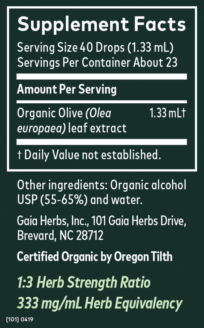 - Gaia Herbs Olive Leaf, Immune Support Herbal Supplement, with Olive Leaf Extract, Certified Organic, 1 Fl Oz (23 Servings)