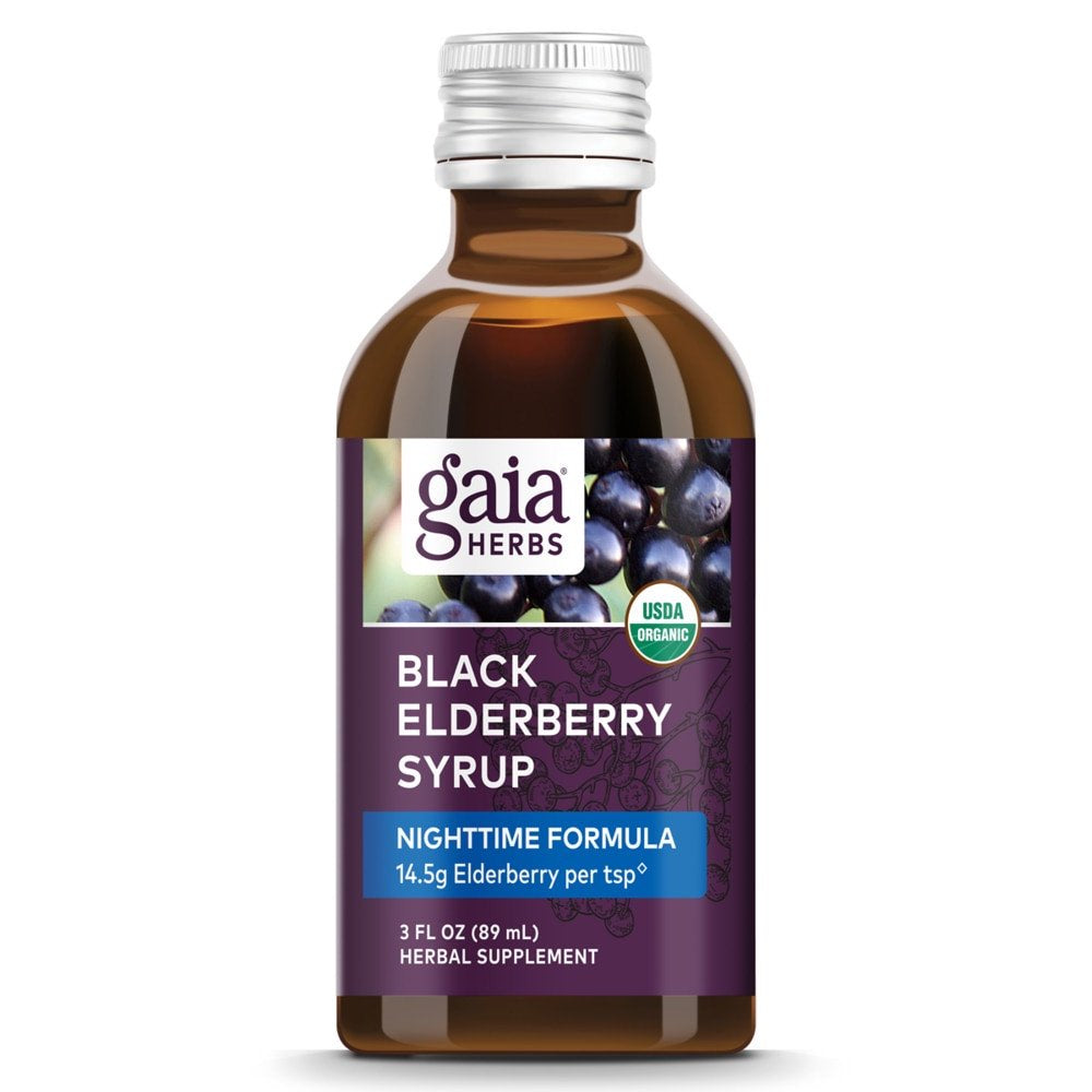 For centuries Black elderberries have been recognized for supporting the immune system. Gaia Herbs' best selling Black Elderberry NightTime Syrup super-concentrates the juice from 14.5 grams of organic Elderberries into a single teaspoon. Another important aspect of optimal health is restful sleep. Black Elderberry NightTime Syrup contains the organic herbs Lemon Balm and California Poppy to gently support a good night of rest.