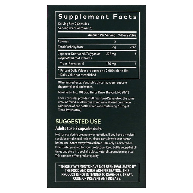 | Product Name | Gaia Herbs, Resveratrol 150, 50 Vegan Liquid Phyto-Caps |