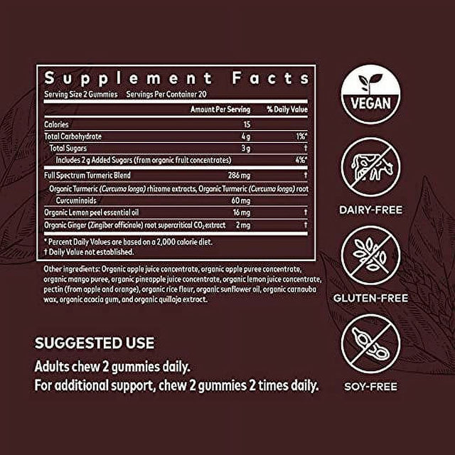 Product Name Gaia Herbs Turmeric Supreme Adult Daily Gummies-Daily Inflammation Support for Healthy, Active Life-USDA Certified Organic Blend of Turmeric and Supportive Herbs-40 Gummies(20-Day Supply)