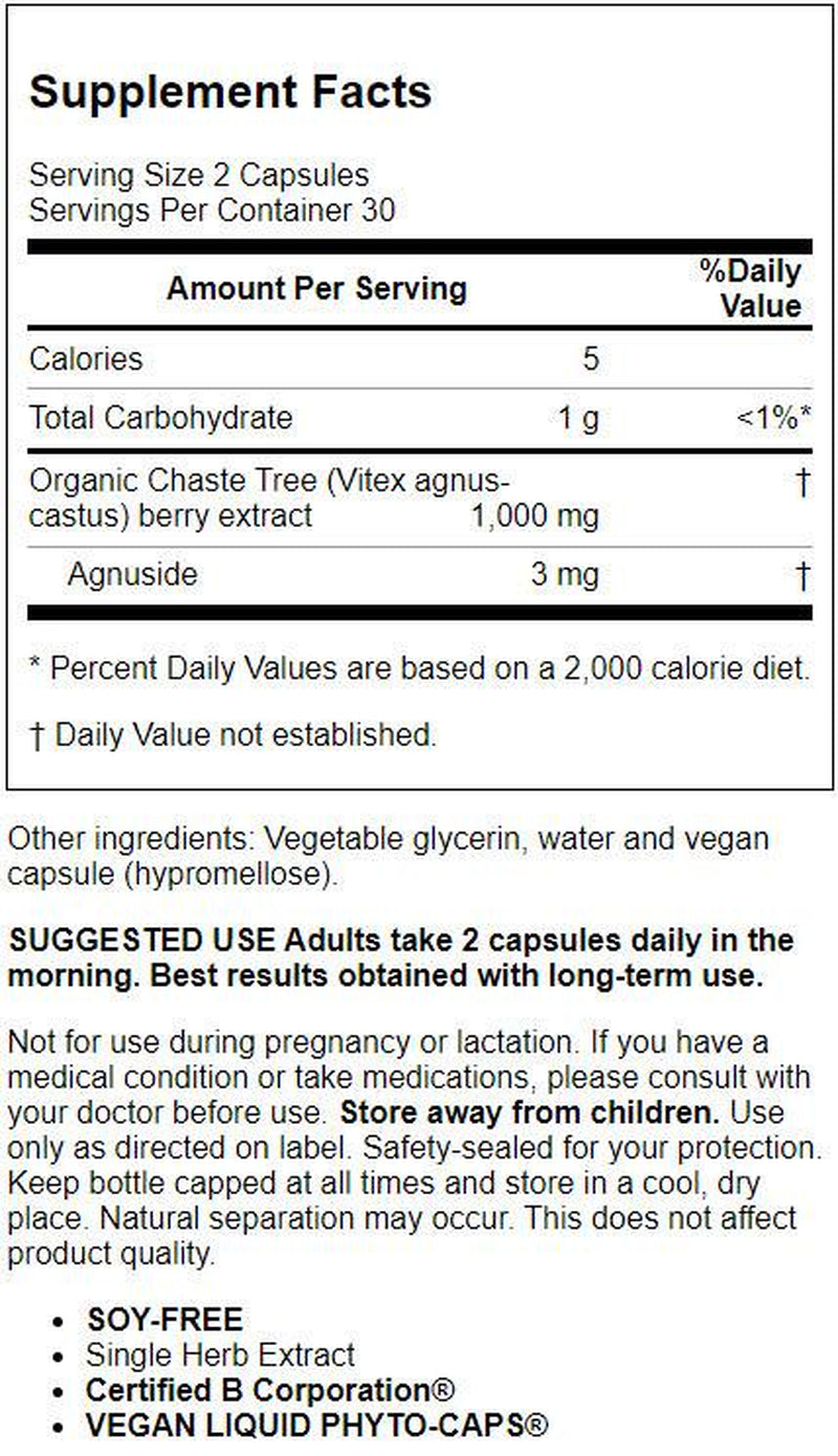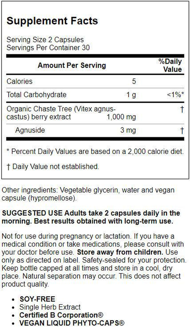 • Gaia Herbs Vitex Berry (Chaste Tree), Supports Hormone Balance and Fertility for Women, Helps Maintain Healthy Progesterone Levels to Support Menstrual Cycle Health, 120 Vegan Caps (60-Day Supply)