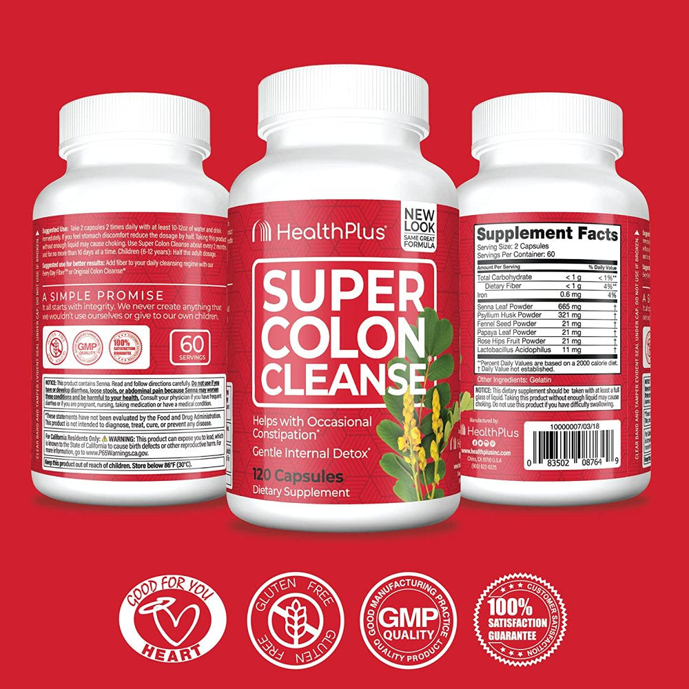 Health plus Super Colon Cleanse Psyllium with Herbs, 500Mg Capsules 120 Ea (Pack of 2) is backordered and will ship as soon as it is back in stock.