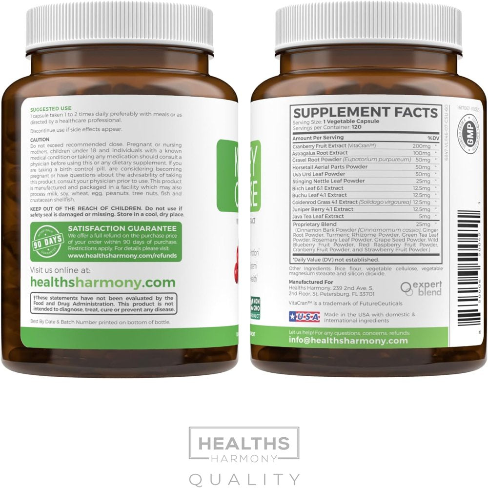 Healths Harmony Kidney Cleanse Supplement (Vegetarian) Supports Bladder Control & Urinary Tract - Powerful Cranberry Extract - Natural Herbs - Kidney Health, Flush & Detox - 120 Capsules No Pills