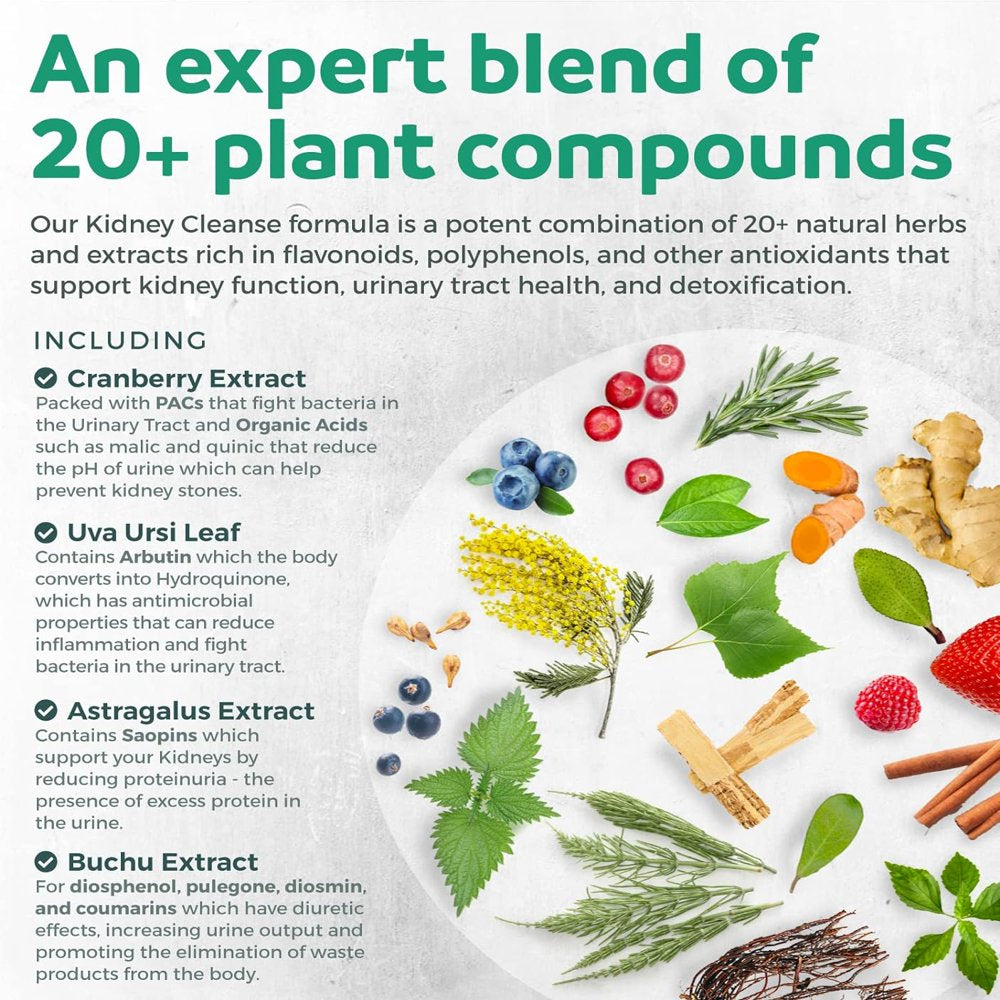 Healths Harmony Kidney Cleanse Supplement (Vegetarian) Supports Bladder Control & Urinary Tract - Powerful Cranberry Extract - Natural Herbs - Kidney Health, Flush & Detox - 60 Capsules No Pills