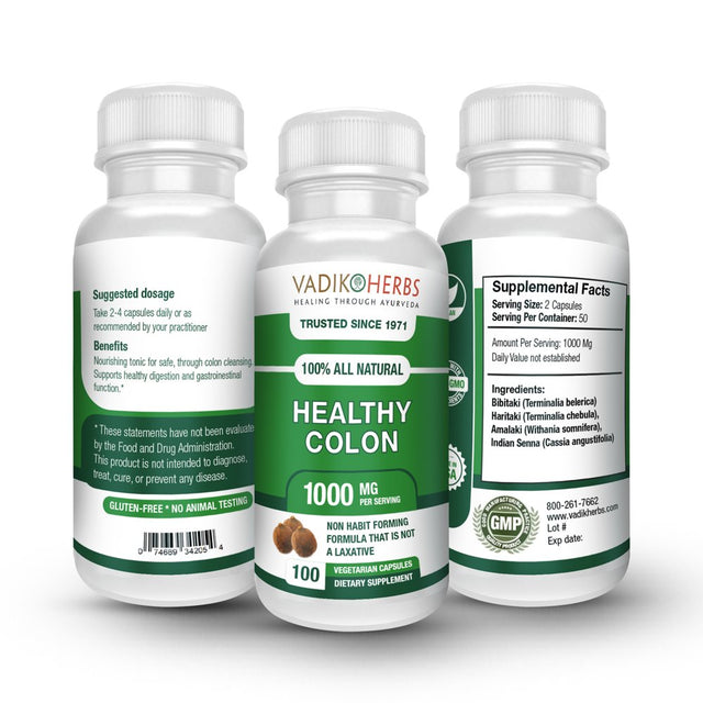 Healthy Colon by Vadik Herbs | Detox, Weight Loss, Increased Energy Levels | Safe, Herbal Bowel Cleanser | Ayurvedic Ayurveda Formula Made in the USA | Triphala (Trifala) plus Senna
