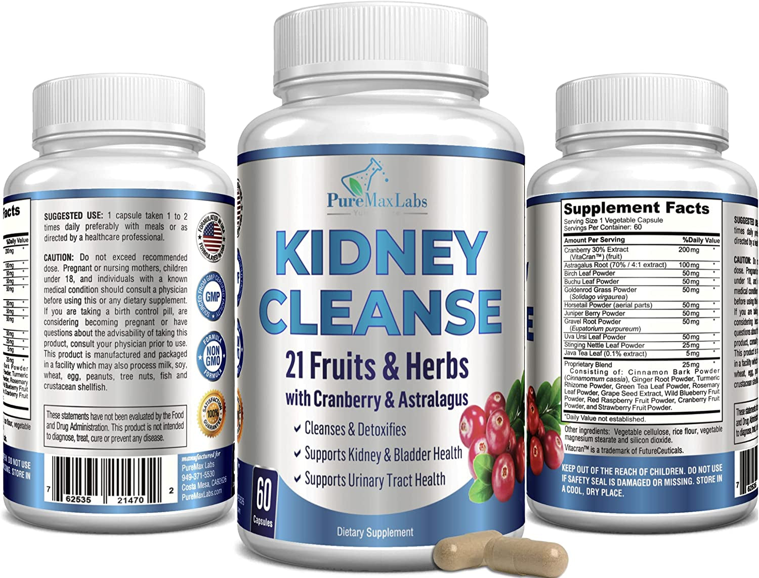 • Kidney Detox & Cleanse - Our Kidney Cleanse is a natural herbal kidney support formula made with 21 powerful herbs and fruits including VitaCran Cranberry Extract. Our Kidney Cleanse Capsules help you detox and cleanse gently and naturally. Our kidney support supplement helps support urinary tract health and bladder health.