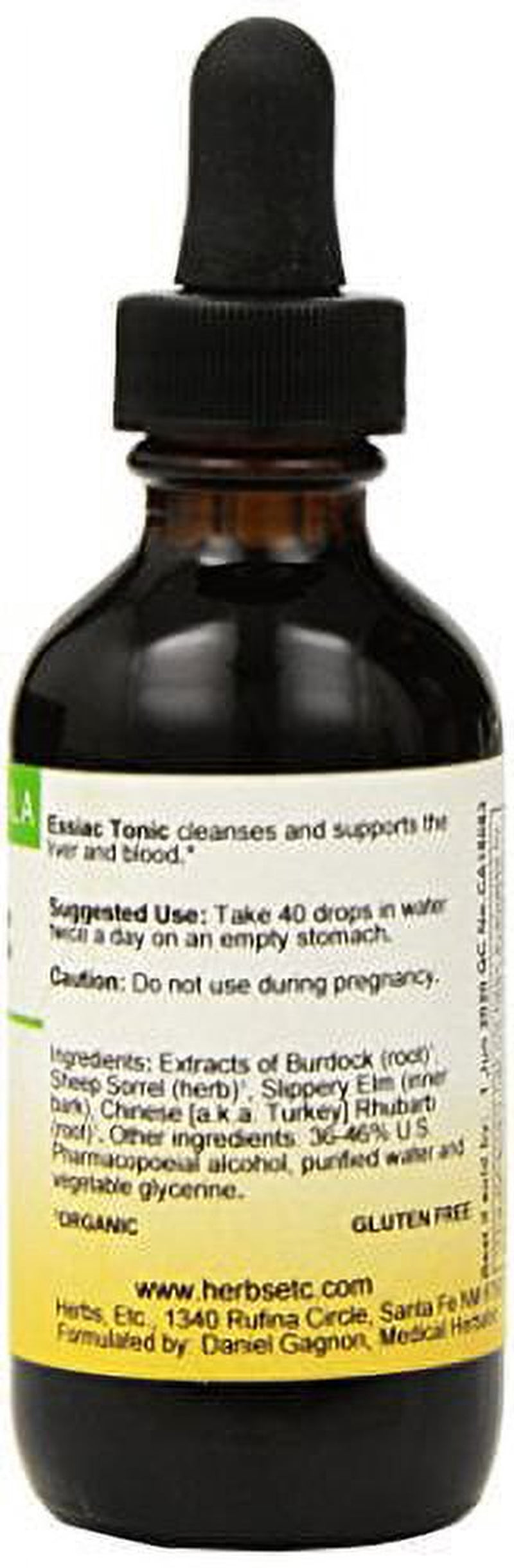 Herbs Etc. Essiac Tonic Professional Strength Highly Concentrated Herbal Formula - 2 oz. (59 ml) Essiac Tonic Professional Strength Herbal Formula is a highly concentrated tonic that eliminates deeply stored waste and supports whole body detox. Essiac Tonic Professional Strength Herbal Formula also cleanses and supports the liver and blood. Essiac Tonic was originally shared with Canadian nurse Rene Caisse by a Chippewa Indian. Essiac Tonic Professional Strength Highly Concentrated Herbal