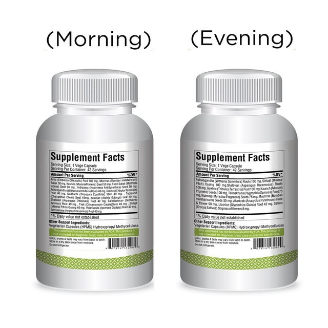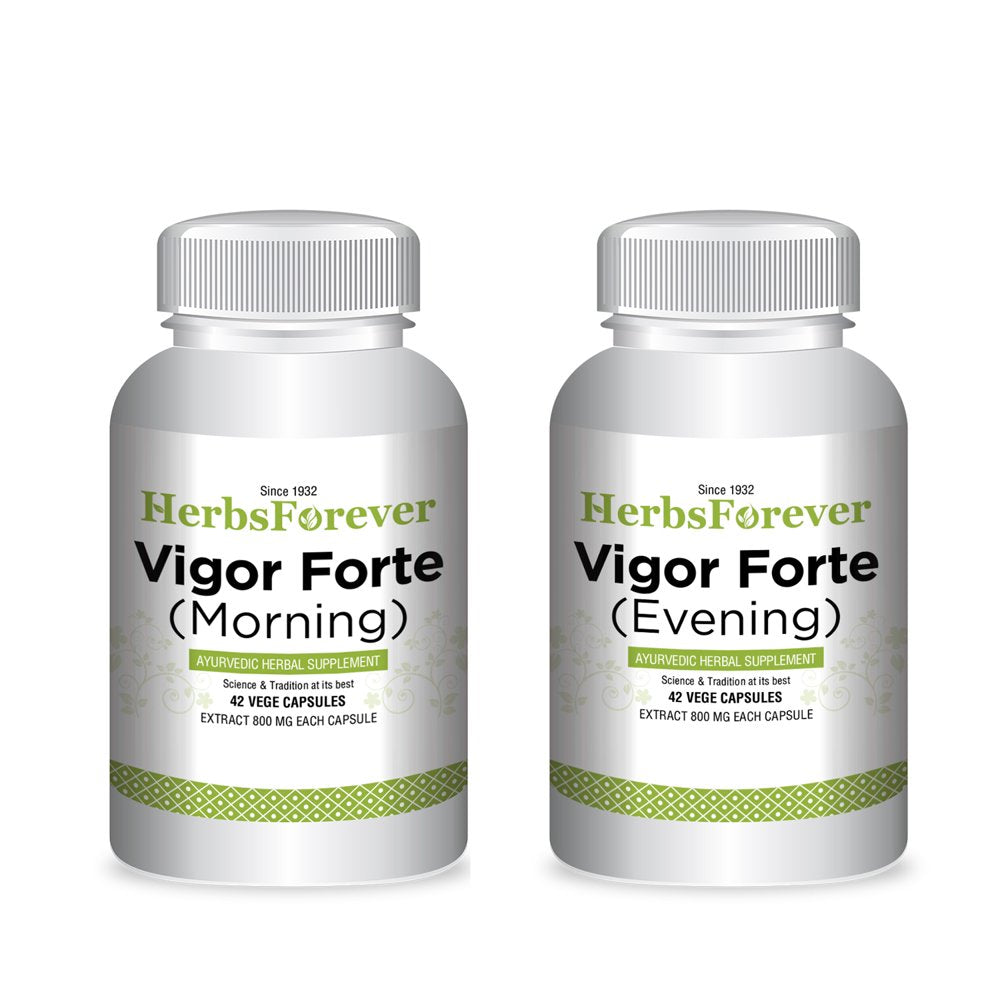 Herbsforever Vigor Health (Vigor Forte) Combination Pack (2 Bottles) - Morning Strength and Evening Strength 42 Veg Capsules Each Bottle, 800 Mg Capsule - Concentrated for Male Health