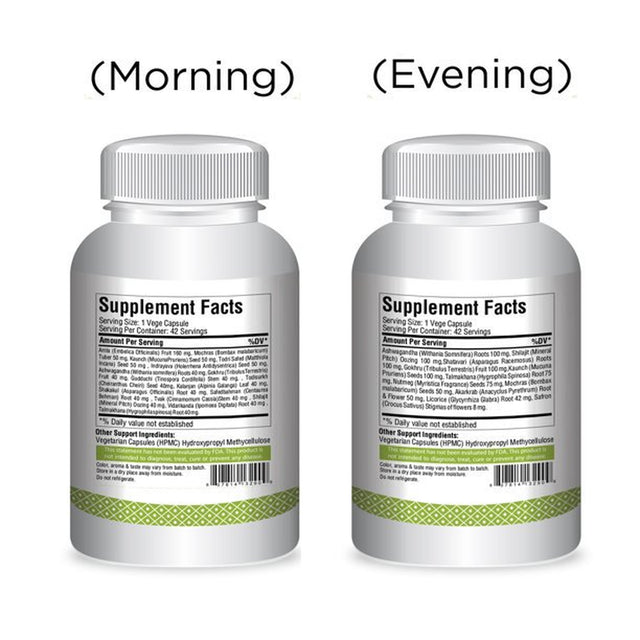 Herbsforever Vigor Health (Vigor Forte) Combination Pack (2 Bottles) - Morning Strength and Evening Strength 42 Veg Capsules Each Bottle, 800 Mg Capsule - Concentrated for Male Health is backordered and will ship as soon as it is back in stock.