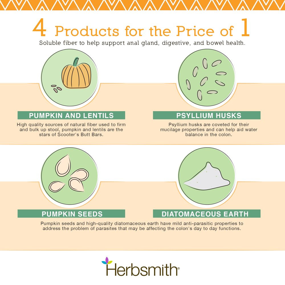 - ALL-NATURAL PUMPKIN TREAT - Whether your doggo has food intolerances, parasites, or just not enough fiber in their diets, our veterinarian-developed formula can help get his distressed bowels back to normal. With pumpkin, pumpkin seeds, psyllium husks, lentils, cinnamon, and diatomaceous earth, these bars combine natural sources of fiber to promote anal gland, digestive and bowel health!