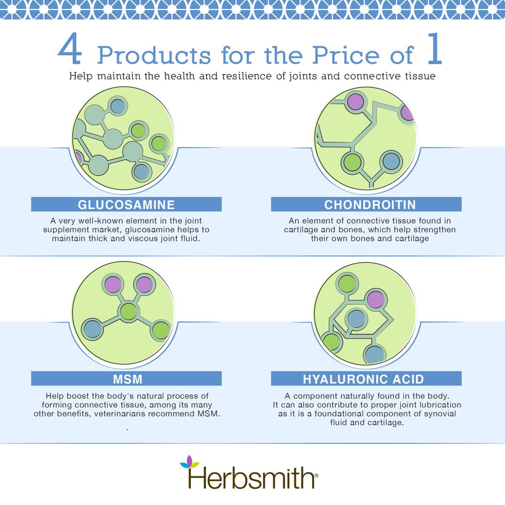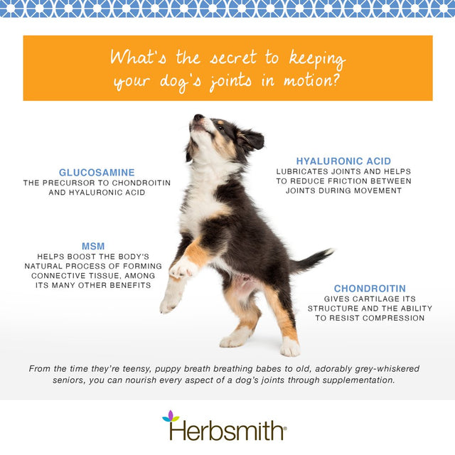- 4-IN-1 CANINE GLUCOSAMINE FORMULA - Glucosamine, chondroitin and hyaluronic acid are the building blocks for synovial fluid, cartilage and connective tissues of the joint, and they work together in this formula to promote long-term joint care. MSM is also included because of its anti-inflammatory effects, which keeps the soft tissue healthy. What this formula really does is give your dog so many more high-spirited games of fetch (those balls aren’t going to chase themselves!).