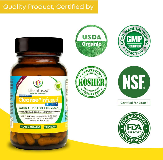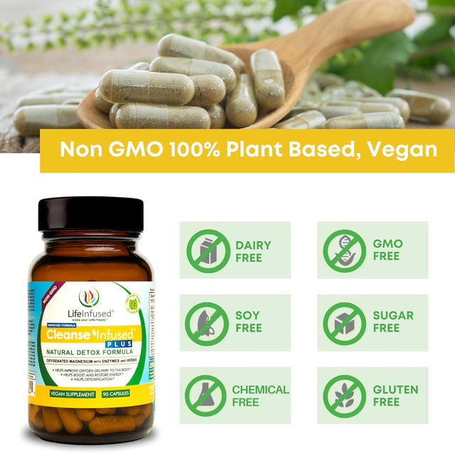 Life Infused Cleanse Infused plus - Premium Natural Colon Cleanser with Oxygenated Magnesium, Herbs, and Enzymes, Helps Relieve Constipation Gently, Detoxifies Blood, Colon, Liver & Kidneys (90 Caps)