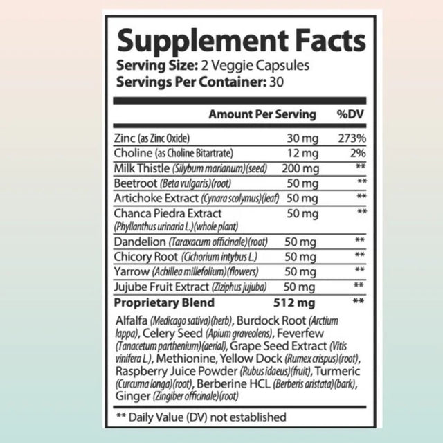 - Premium Ingredients: Milk Thistle, Beetroot, Artichoke Extract, Dandelion to support liver health. With Zinc and Choline, it provides essential nutrients for optimal liver function. The proprietary blend includes herbs and extracts known for their detoxifying properties and liver support.